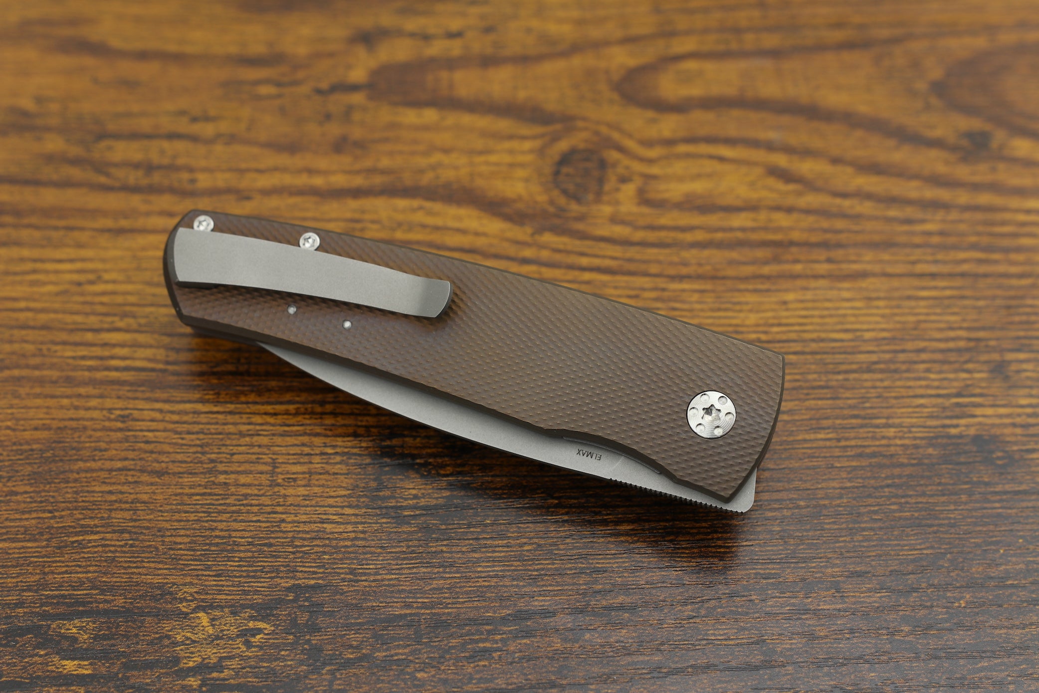 - Blade: Made from Elmax steel with a CM1 finish for exceptional sharpness and edge retention