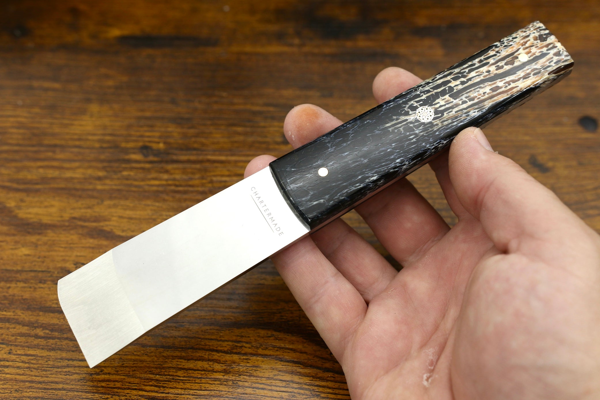 The blade is made from Böhler-Udderholm N690 steel and has polished finished. The handle has been designed with chamfered edges and has a slight domed shape so it fits comfortably in the hand and is easy to use.